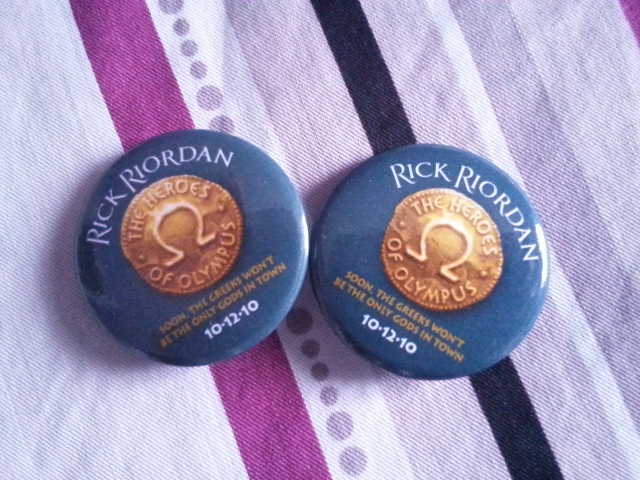 I went to my local Hastings the other day and I found these awesome buttons on some random table.. just for the taking. So I took them :) I do love me some Percy Jackson ;)